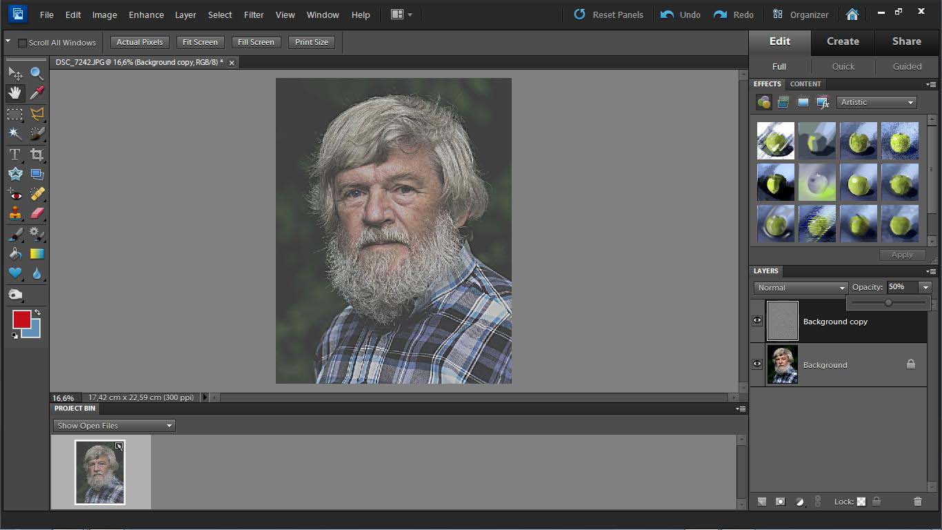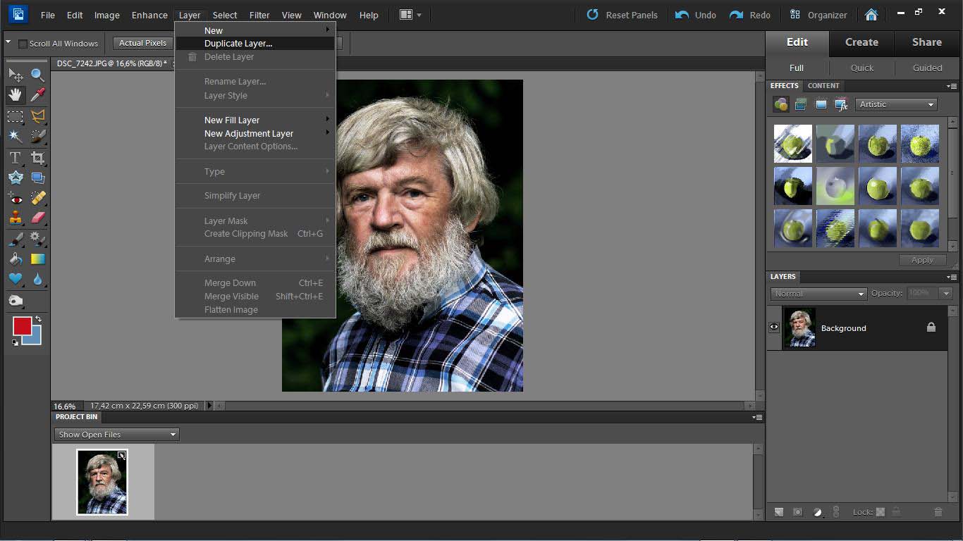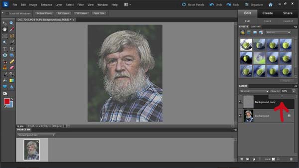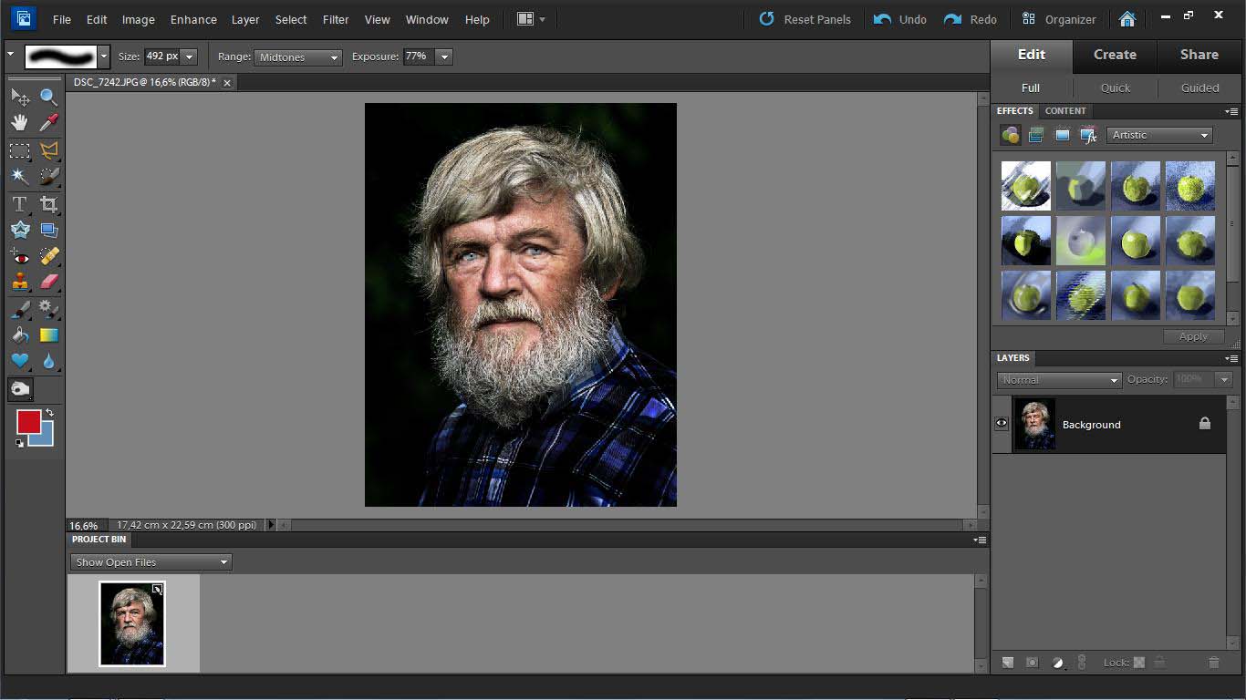 I det flg. er der en beskrivelse af, hvordan man kan tilnærme sig en Dragan-effekt i Photoshop Elements. Udgangspunktet er her et foto taget i dagslys, hvor Andrzej Dragan's billeder primært er taget i kunstlys. Beskrivelsen giver et eksempel, man kan udvikle videre på.