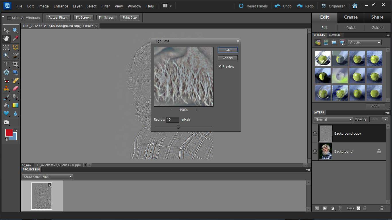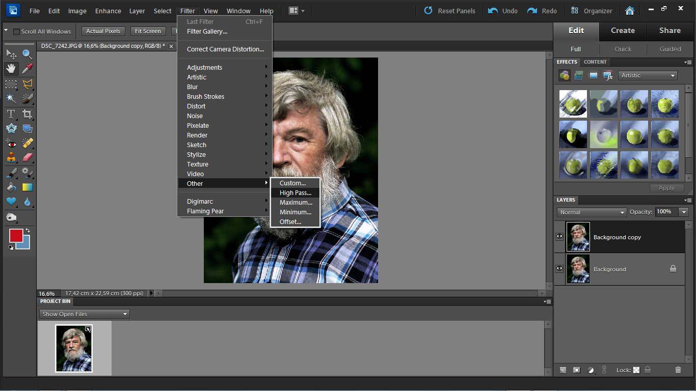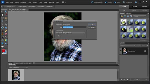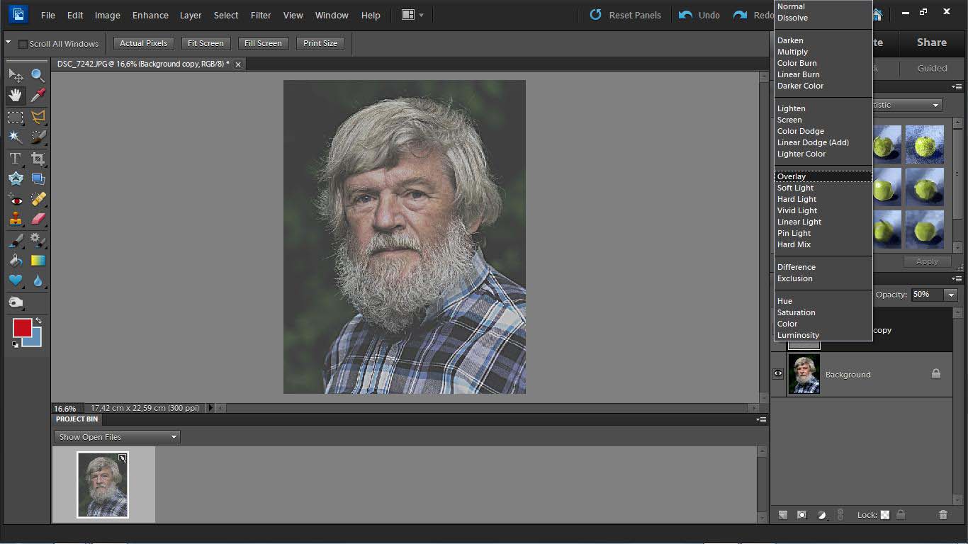 I det flg. er der en beskrivelse af, hvordan man kan tilnærme sig en Dragan-effekt i Photoshop Elements. Udgangspunktet er her et foto taget i dagslys, hvor Andrzej Dragan's billeder primært er taget i kunstlys. Beskrivelsen giver et eksempel, man kan udvikle videre på.