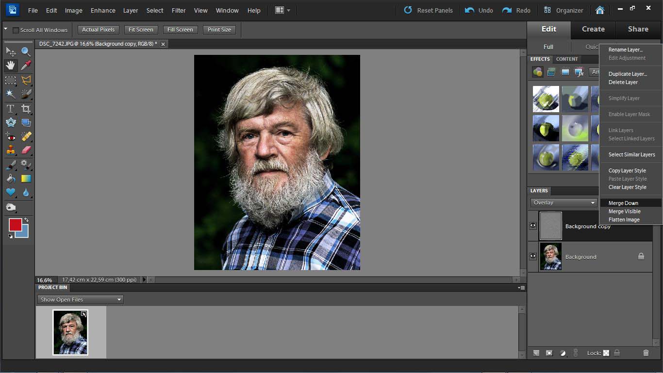 Der højreklikkes på Background Copy og der vælges Merge Down.