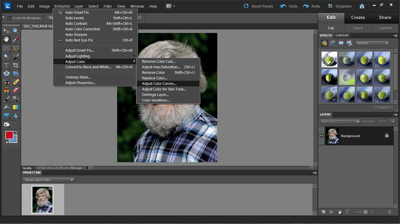 Der vælges Enhance - Adjust Color - Adjust Color Curves.