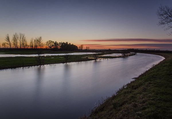 ND-filter(gråfilter) og lang lukkertid. Audebokanalen fotograferet efter solnedgang med en lukkertid på 1,5 minut. Audebokanalen er fyldt op med vand. 04 januar 2015.
