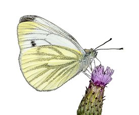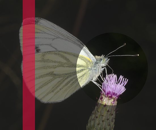 This selection was made with the Focus Aray caommand. To remove the blacks between the legs I used the Magic Wand tool. For details on the thisle and the butterfly's antennae I used the Pen tool. |