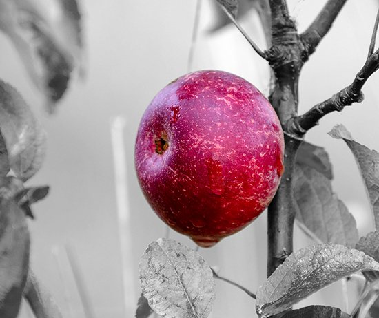 The apple have sharp border and are easy to select with the Quick Selection tool, |